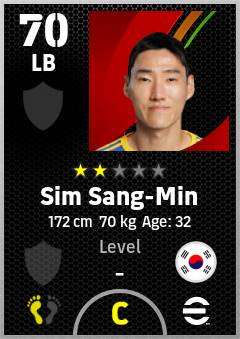 . Sim Sang-Min is a Left Back footballer from Korea Republic who plays for Free in eFootball 2026.