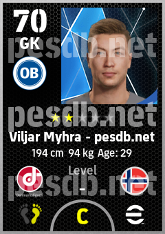 . Viljar Myhra is a Goalkeeper footballer from Norway who plays for Odense Hb in eFootball 2026.