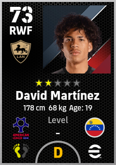 . David Martínez is a Right Wing Forward footballer from Venezuela who plays for Los Angeles By in eFootball 2026.