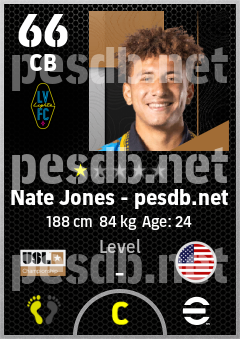 . Nate Jones is a Center Back footballer from United States who plays for Las Vegas Lights Fc in eFootball 2026.