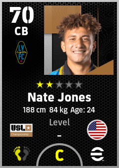 . Nate Jones is a Center Back footballer from United States who plays for Las Vegas Lights Fc in eFootball 2026.