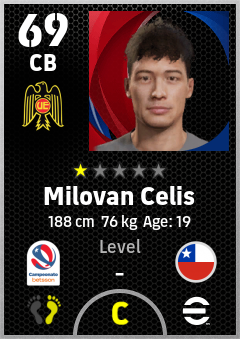 . Milovan Celis is a Center Back footballer from Chile who plays for Santiago Ra in eFootball 2026.