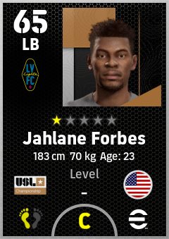 . Jahlane Forbes is a Left Back footballer from United States who plays for Las Vegas Lights Fc in eFootball 2026.