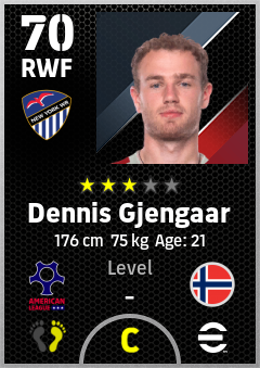 . Dennis Gjengaar is a Right Wing Forward footballer from Norway who plays for New York Wr in eFootball 2026.