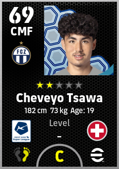 . Cheveyo Tsawa is a Center Midfielder footballer from Switzerland who plays for Zürich Wb in eFootball 2026.