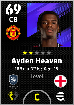 . Ayden Heaven is a Center Back footballer from England who plays for Manchester United in eFootball 2026.