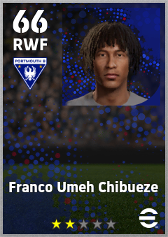 . Franco Umeh Chibueze is a Right Wing Forward footballer from Republic Of Ireland who plays for Portsmouth B in eFootball 2026.