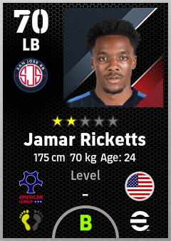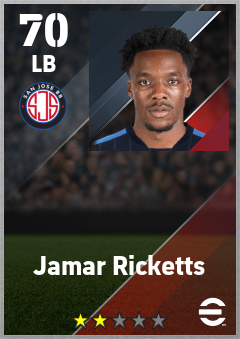 . Jamar Ricketts is a Left Back footballer from United States who plays for San Jose Bb in eFootball 2026.