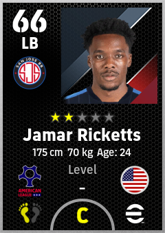 . Jamar Ricketts is a Left Back footballer from United States who plays for San Jose Bb in eFootball 2026.