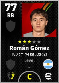 . Román Gómez is a Right Back footballer from Argentina who plays for Free in eFootball 2026.