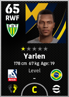 . Yarlen is a Right Wing Forward footballer from Brazil who plays for Cd Tondela in eFootball 2026.