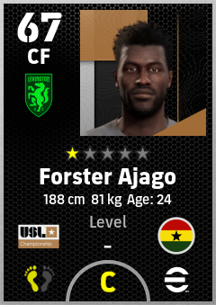 . Forster Ajago is a Center Forward footballer from Ghana who plays for Lexington Sc in eFootball 2026.