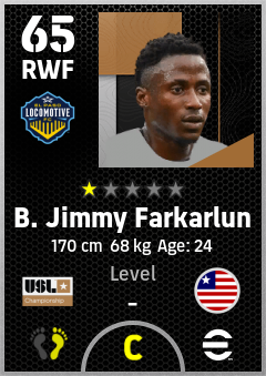 . B. Jimmy Farkarlun is a Right Wing Forward footballer from Liberia who plays for El Paso Locomotive Fc in eFootball 2026.