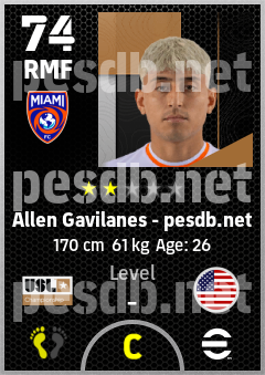 . Allen Gavilanes is a Right Midfielder footballer from United States who plays for Miami Fc in eFootball 2026.