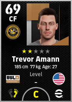 . Trevor Amann is a Center Forward footballer from United States who plays for Pittsburgh Riverhounds in eFootball 2026.