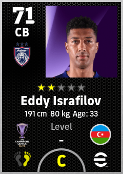 . Eddy Israfilov is a Center Back footballer from Azerbaijan who plays for Johor Darul Ta'zim Fc in eFootball 2026.