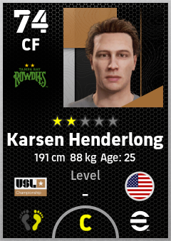 . Karsen Henderlong is a Center Forward footballer from United States who plays for Tampa Bay Rowdies in eFootball 2026.