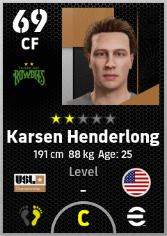 . Karsen Henderlong is a Center Forward footballer from United States who plays for Tampa Bay Rowdies in eFootball 2026.