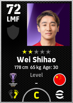 . Wei Shihao is a Left Midfielder footballer from China Pr who plays for Chengdu Rongcheng Fc in eFootball 2026.