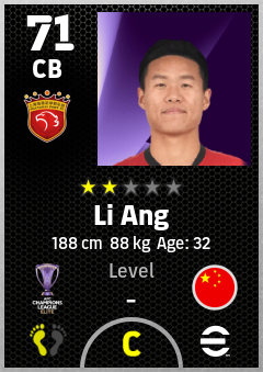 . Li Ang is a Center Back footballer from China Pr who plays for Shanghai Port Fc in eFootball 2026.
