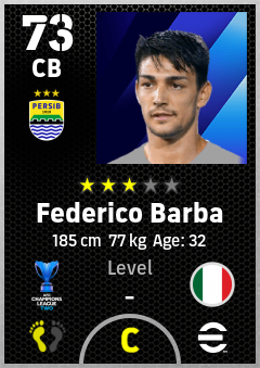 . Federico Barba is a Center Back footballer from Italy who plays for Persib Bandung in eFootball 2026.