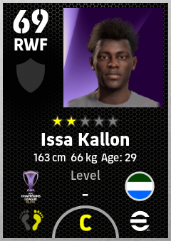 . Issa Kallon is a Right Wing Forward footballer from Sierra Leone who plays for Chengdu Rongcheng Fc in eFootball 2026.