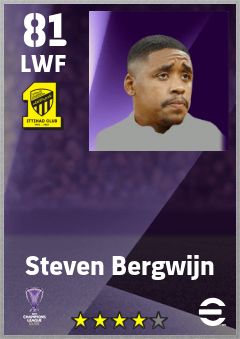 . Steven Bergwijn is a Left Wing Forward footballer from Netherlands who plays for Al Ittihad Club in eFootball 2026.