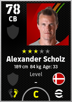 . Alexander Scholz is a Center Back footballer from Denmark who plays for Free in eFootball 2026.