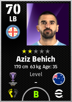 . Aziz Behich is a Left Back footballer from Australia who plays for Melbourne City Fc in eFootball 2026.
