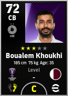 . Boualem Khoukhi is a Center Back footballer from Qatar who plays for Al Sadd Sc in eFootball 2026.