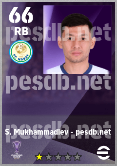 . S. Mukhammadiev is a Right Back footballer from Uzbekistan who plays for Fc Nasaf in eFootball 2026.