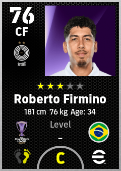 . Roberto Firmino is a Center Forward footballer from Brazil who plays for Al Sadd Sc in eFootball 2026.