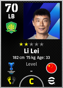 . Li Lei is a Left Back footballer from China Pr who plays for Beijing Fc in eFootball 2026.