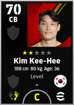 . Kim Kee-Hee is a Center Back footballer from Korea Republic who plays for Free in eFootball 2026.