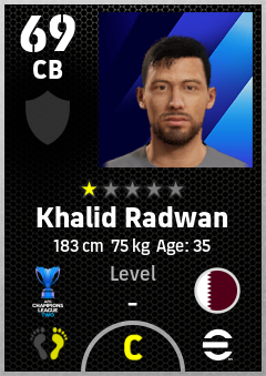 . Khalid Radwan is a Center Back footballer from Qatar who plays for Al Ahli Sc in eFootball 2026.