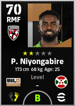 . P. Niyongabire is a Right Midfielder footballer from Burundi who plays for Loudoun United Fc in eFootball 2026.