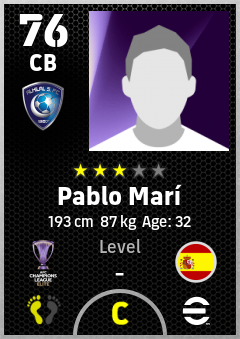 . Pablo Marí is a Center Back footballer from Spain who plays for Al Hilal Sfc in eFootball 2026.