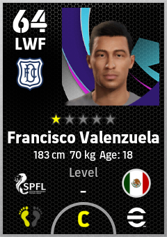 Francisco Valenzuela is a Left Wing Forward footballer from Mexico who plays for Dundee Fc in eFootball 2026.