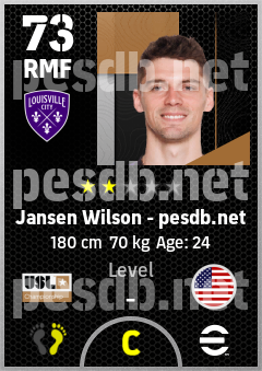 . Jansen Wilson is a Right Midfielder footballer from United States who plays for Louisville City Fc in eFootball 2026.