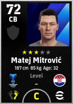 . Matej Mitrović is a Center Back footballer from Croatia who plays for Al Ahli Sc in eFootball 2026.