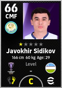 . Javokhir Sidikov is a Center Midfielder footballer from Uzbekistan who plays for Fc Nasaf in eFootball 2026.