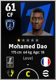 . Mohamed Dao is a Center Forward footballer from France who plays for Paris Fc in eFootball 2026.