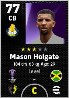 . Mason Holgate is a Center Back footballer from Jamaica who plays for Al Gharafa Sc in eFootball 2026.