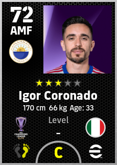 . Igor Coronado is a Attacking Midfielder footballer from Italy who plays for Sharjah Fc in eFootball 2026.