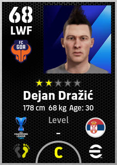. Dejan Dražić is a Left Wing Forward footballer from Serbia who plays for Fc Goa in eFootball 2026.