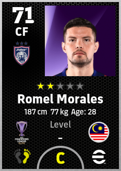 Romel Morales is a Center Forward footballer from Malaysia who plays for Johor Darul Ta'zim Fc in eFootball 2026.