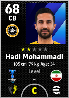 . Hadi Mohammadi is a Center Back footballer from Ir Iran who plays for Sepahan Sc in eFootball 2026.
