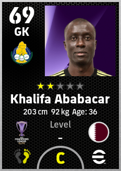 . Khalifa Ababacar is a Goalkeeper footballer from Qatar who plays for Al Gharafa Sc in eFootball 2026.