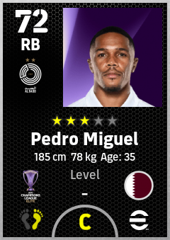. Pedro Miguel is a Right Back footballer from Qatar who plays for Al Sadd Sc in eFootball 2026.