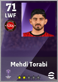 . Mehdi Torabi is a Left Wing Forward footballer from Ir Iran who plays for Tractor Fc in eFootball 2026.